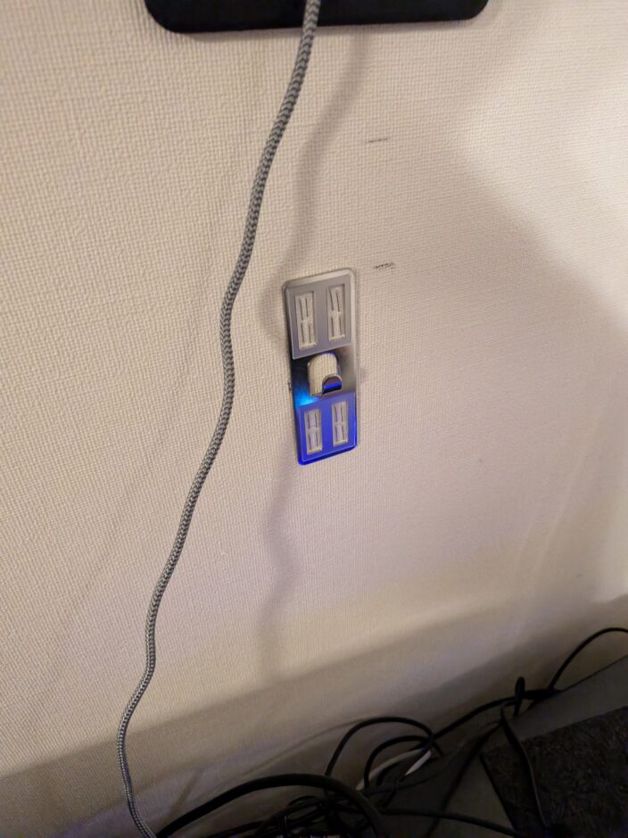 浮いたことで目立ってしまうケーブル類は、デスクの足に沿わせてマジックテープで他のケーブルと一緒に束ねました。