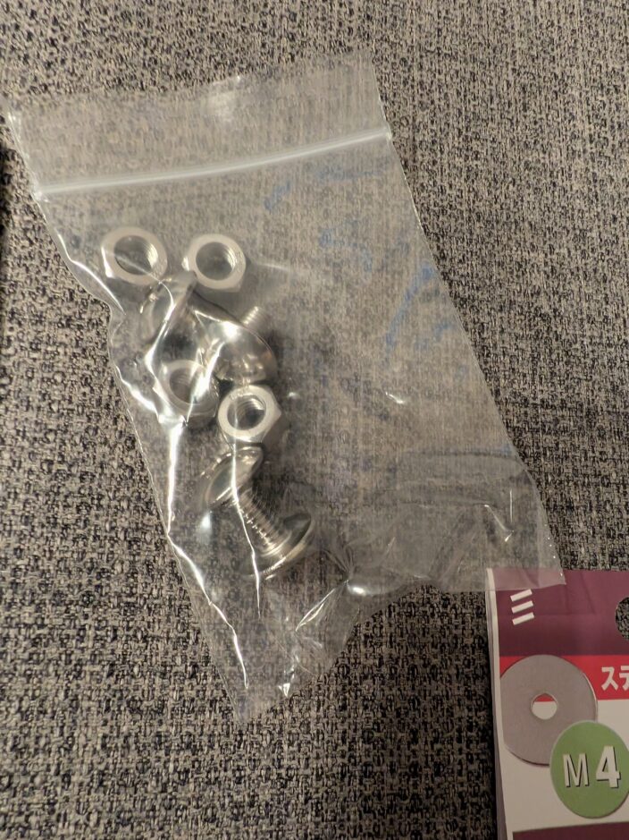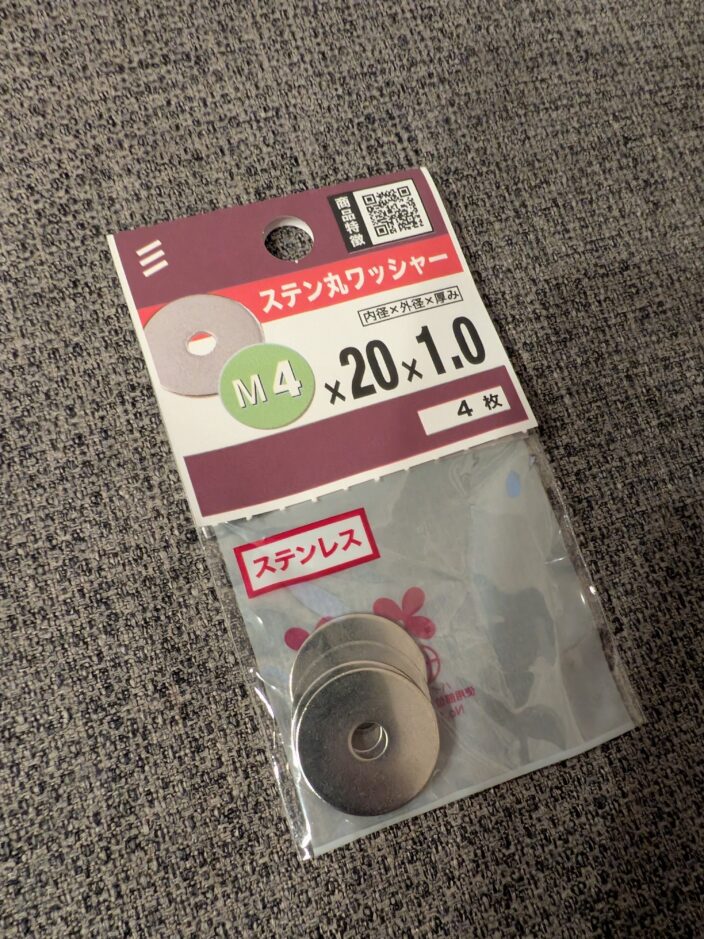 - M4ねじ & 特寸ワッシャー: ステーの大きな穴を、大径の特寸ワッシャーで面圧固定。ガタつきを完璧に排除。